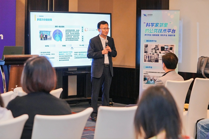 論壇中,北化生科黨總支書記、總經理申海成從專業(yè)運營空間、專業(yè)運營團隊和專項產業(yè)基金等多個方面,深度聚焦以核酸藥物為代表的五大細分賽道,向與會者詮釋“國際生物島”獨有的“1公里科學家鄰里”生態(tài),并通過高標準技術平臺、專項基金、技術審評、專屬空間、高科技人才和公共服務六大生態(tài)要素協(xié)同,系統(tǒng)闡釋從“0-1-N”的產業(yè)化路徑。